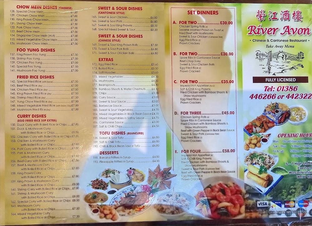River Avon is located at the heart of Evesham, specifically at 5-7 High St, WR11 4DA, making it easily accessible for locals and visitors alike. The quaint town of Evesham, famous for its historic architecture and beautiful green spaces, provides the perfect backdrop for this vibrant restaurant. Just a short walk from the River Avon itself, patrons can enjoy a scenic stroll after their meal. Parking options include free street parking and paid lots nearby, easing the stress of city dining. The restaurant is also wheelchair accessible, ensuring everyone can enjoy the delightful culinary experience. River Avon's inviting atmosphere attracts a diverse crowd—locals gather for dinner, while tourists stop by to relish authentic Chinese flavors. Engaging staff and a warm ambiance contribute to the restaurant's charm, making it a cherished part of the Evesham dining scene.
